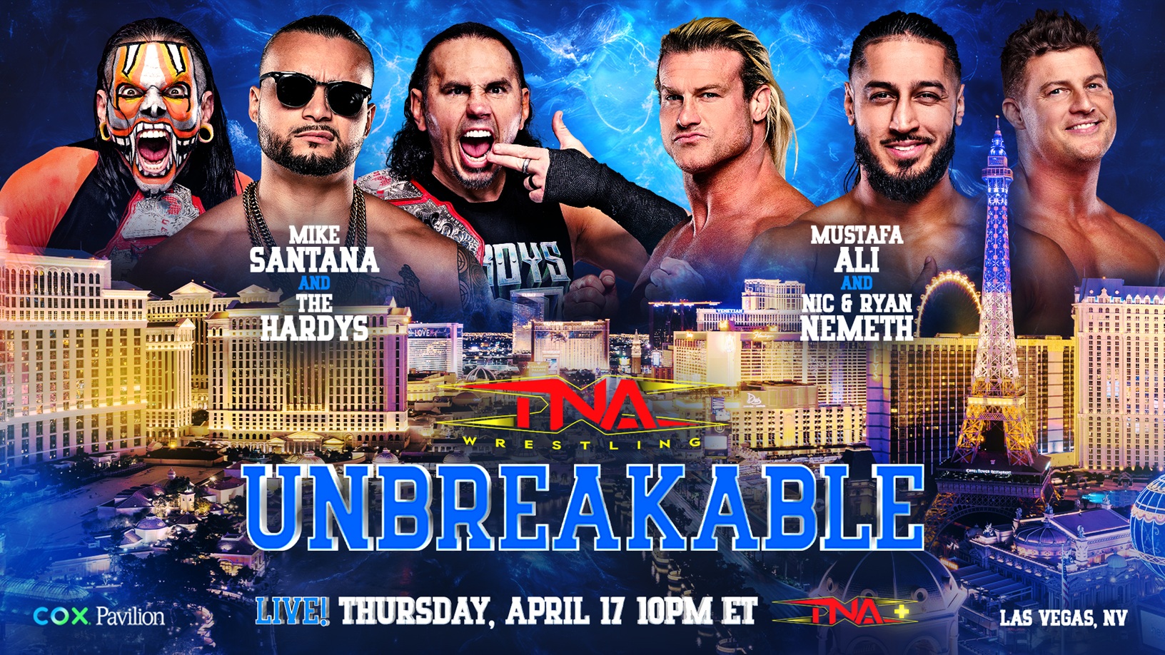 TNA Wrestling presents Unbreakable streaming LIVE Thursday, April 17 at 10pm ET on TNA+ from the Cox Pavilion in Las Vegas, NV. Tickets are on-sale now at UNLVtickets.com.