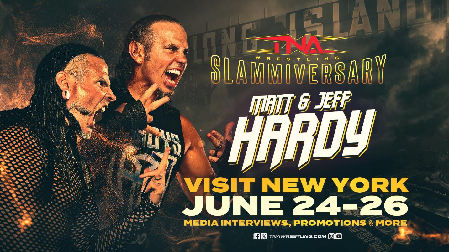 The Hardys can be found for media interviews June 24-26 as TNA Wrestling builds towards Slammiversary on Sunday, July 20, originating from UBS Area in Belmont Park.