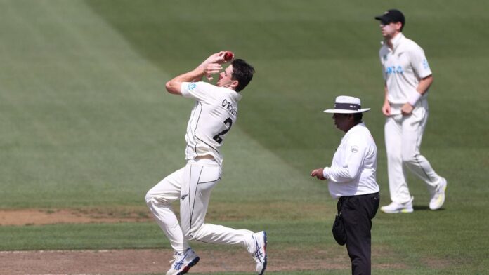 Black Caps paceman Will O’Rourke has been dominated out of the second Check in opposition to Zimbabwe by a again harm and can return to New Zealand for therapy, the staff stated on Wednesday.